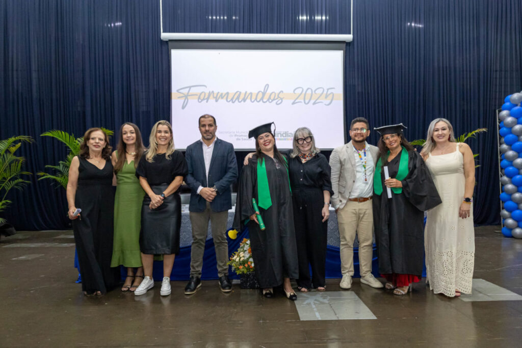 Na noite desta quinta-feira (26), 89 Agentes Comunitários de Saúde se formaram em uma cerimônia realizada no auditório da UniAnchieta. Esta foi a segunda turma a concluir o curso, que integra o “Projeto Saúde com Agente”, uma iniciativa do Ministério da Saúde (MS), por meio da Secretaria de Gestão do Trabalho e da Educação na Saúde (SGTES), em parceria com a Universidade Federal do Rio Grande do Sul (UFRGS) e o Conselho Nacional de Secretarias Municipais de Saúde (Conasems).Hoje não é só uma formatura, é o reconhecimento público de pessoas que escolheram estar onde a vida acontece de verdade: nas ruas. O Sistema Único de Saúde (SUS) se sustenta na força desses profissionais”, disse a secretária de Promoção de Saúde, Márcia Facci.