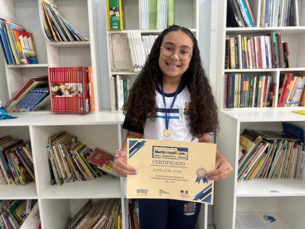Estudantes das Escolas Municipais de Educação Básica (EMEBs) de Jundiaí conquistaram destaque na edição 2025 da Olimpíada Internacional Matemática Sem Fronteiras (OIMSF), uma das maiores competições interclasses de matemática do mundo. A EMEB Deodato Janski recebeu medalha de prata e medalha de bronze na categoria nacional, enquanto as EMEBs Aparecido Garcia e Joaquim Candelário de Freitas foram reconhecidas com menção honrosa.