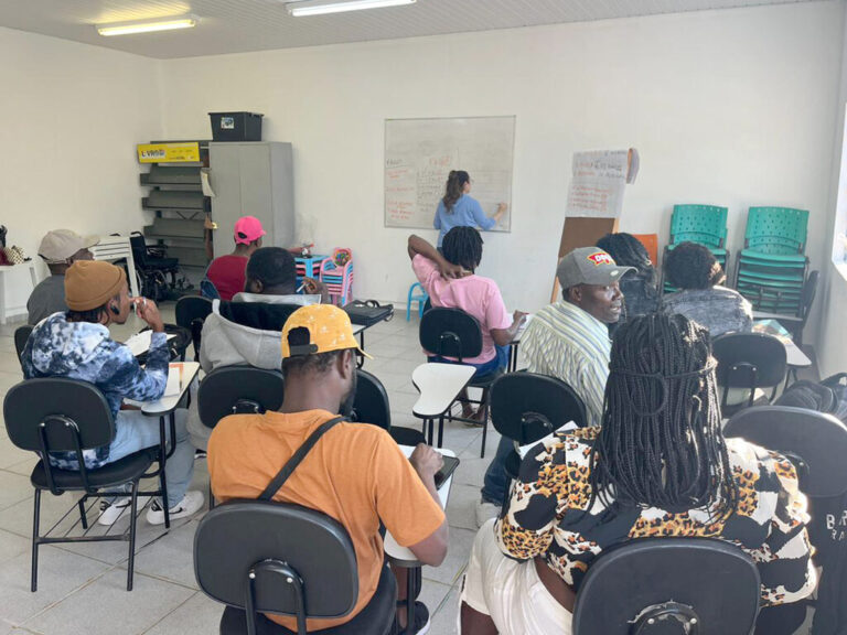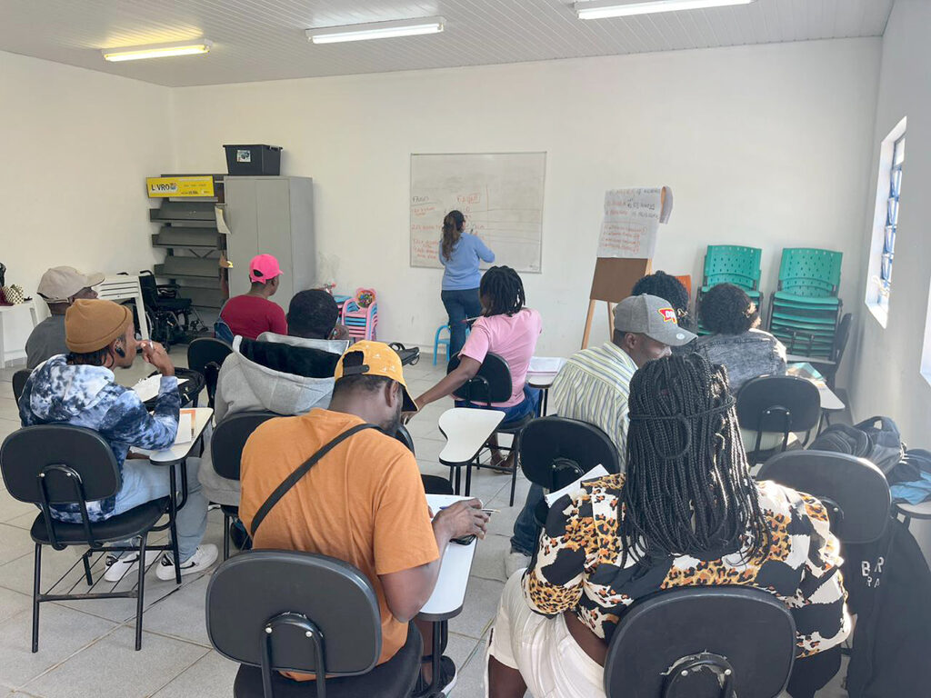 O conteúdo é ministrado de forma prática e interativa, com atividades que estimulam a reflexão e conscientização para os migrantes, buscando fortalecer vínculos comunitários e ampliar oportunidades de inserção social.