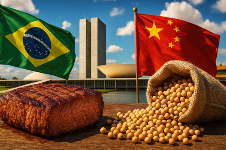 Em meio ao tarifaço de 50% imposto pelos Estados Unidos sobre produtos brasileiros, Brasil e China trabalham na criação de um protocolo bilateral para certificação e rastreabilidade de produtos agropecuários, com foco central na exportação de carne e soja para o país asiático.