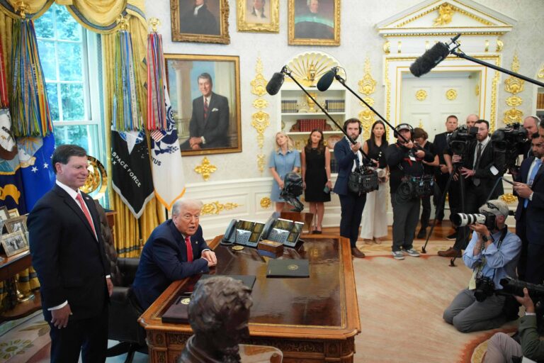 “O Brasil tem sido um parceiro comercial horrível em termos de tarifas. Como você sabe, eles nos cobram tarifas enormes, muito, muito maiores do que as que cobrávamos deles. Na verdade, praticamente não cobramos nada”, afirmou Trump a jornalistas no Salão Oval da Casa Branca.