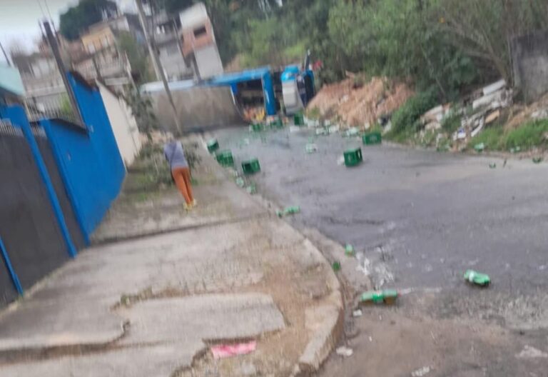 CAMINHÃO CARREGADO COM REFRIGERANTES TOMBA EM RUA DE FRANCISCO MORATO