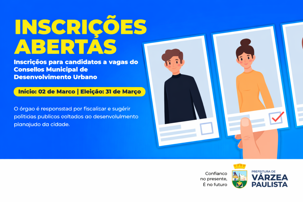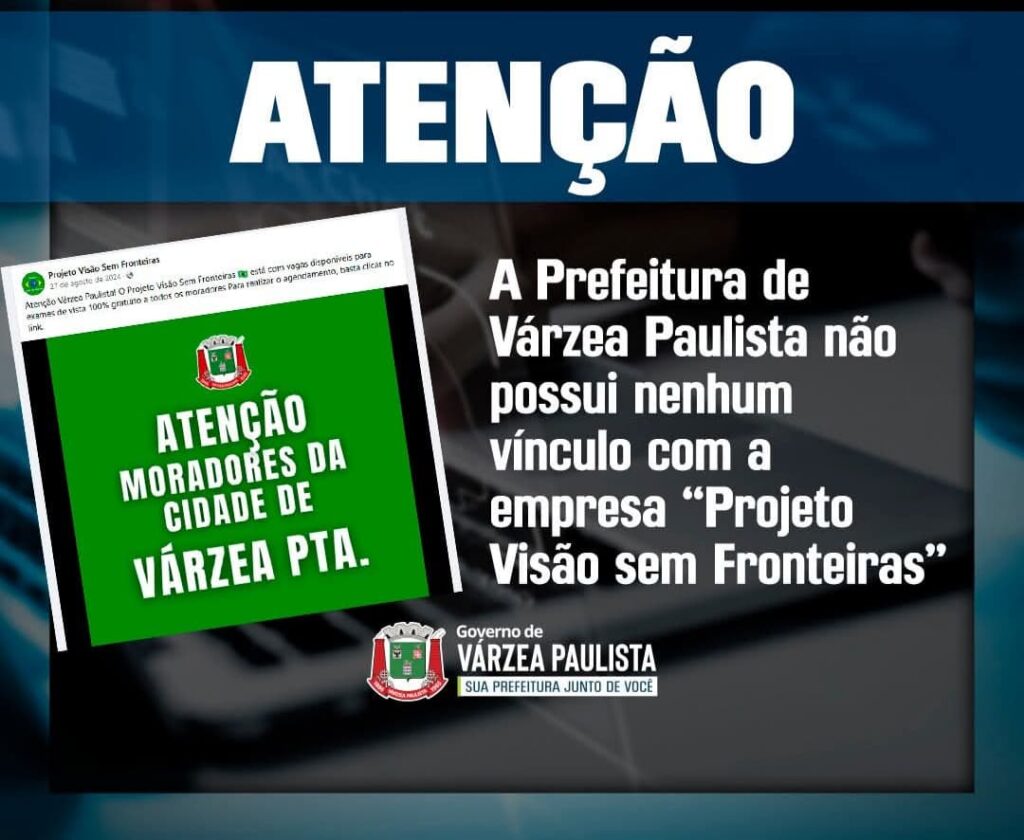 FIQUE ATENTO! Ressaltamos que a Prefeitura não tem nenhuma ligação com o Projeto Visão sem Fronteiras e não realiza cadastro de moradores. Fique sempre atento com a divulgação dos seus dados pessoais. Prefeitura de Várzea Paulista