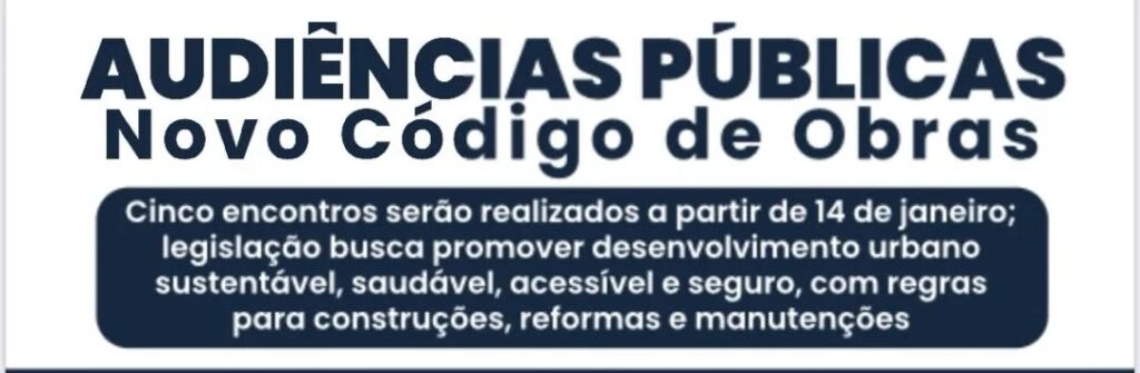 Lei de Parcelamento, Uso e Ocupação do Solo terá audiências públicas.