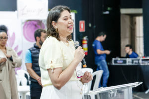 A empreendedora Rosangela Rosa, da empresa Rosa Shine Store, que falou em nome dos expositores. Ela contou sua trajetória desde a primeira visita à feira até a atual edição, em que participa ao lado de outras seis empreendedoras. “Foi aqui que tudo começou. Entendi que precisava me formalizar, me capacitar e mostrar meu trabalho. Hoje, estou na minha quinta participação, fruto também das conexões criadas pelo programa Conecta. A FENS é uma vitrine incrível para mostrar nosso trabalho, ganhar visibilidade e gerar grandes negócios. É uma honra e também uma grande responsabilidade representar tantos empreendedores que sonham e realizam aqui”, celebrou.