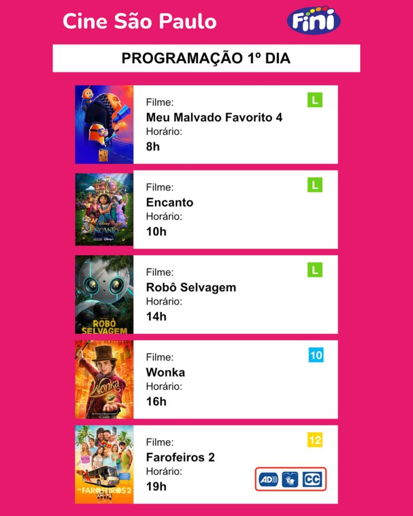 Durante os dois dias de atividade, as sessões acontecerão em diferentes horários, permitindo que moradores de diversas regiões da cidade possam participar. As exibições estão programadas para os seguintes horários: 8h, 10h, 14h, 16h e 19h. Além da exibição dos filmes, o projeto também oferece pipoca e refrigerante gratuitos, proporcionando uma experiência completa de cinema para crianças, jovens e famílias.