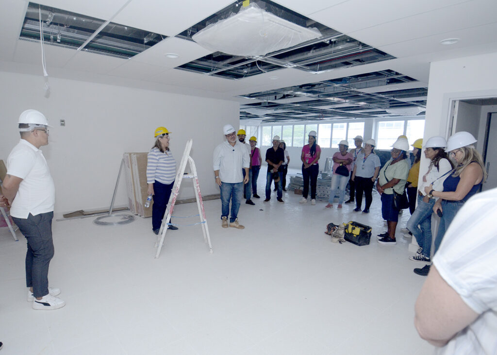 Atualmente, as equipes trabalham em várias frentes simultâneas: implantação de pisos, finalização da rede elétrica, instalação de forros e adequação das duas casas de máquinas — onde já foram içados e instalados mais de 20 aparelhos de ar-condicionado, responsáveis por climatizar todo o último pavimento. O sistema garantirá conforto térmico para pacientes, acompanhantes e profissionais de saúde.