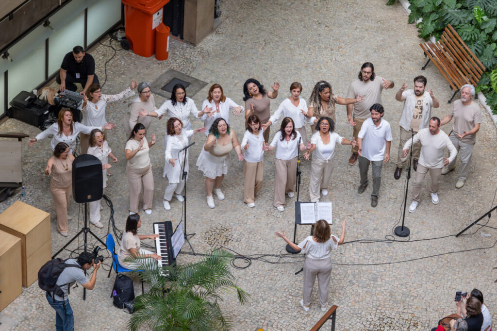 Já na terça-feira (29), quem se apresentou foi o Coral Municipal de Jundiaí (adulto), sob a regência e direção artística de Vastí Atique. Para os servidores, o grupo apresentou clássicos como “Anunciação” e “Ai que saudades d’ocê”, que integram o repertório de seu novo espetáculo “Pela Estrada – Canções do Nosso Brasil”, cuja estreia está marcada para o dia 08 de novembro (sábado), às 20h, na Sala Glória Rocha.
