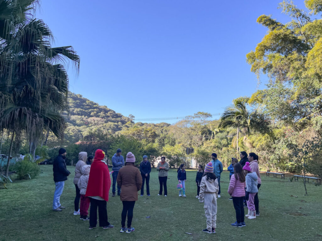Vencendo a sensação térmica dos 7°C da manhã da última quarta-feira (25), as crianças da turma de Ginástica Artística trocaram o tablado do Complexo Esportivo Francisco Dal Santo, na vila Rami, por uma série de atividades como uma trilha lúdica na Serra do Japi. A partir do Centro de Referência em Educação Ambiental (Cream), as estudantes iniciaram as atividades com um alongamento e aquecimento, para acompanhadas de seus pais e responsáveis, pudessem encarrar a subida em meio à mata.