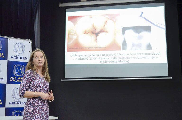 Na manhã desta segunda-feira (15), todos os cirurgiões-dentistas da Atenção Primária à Saúde de Várzea Paulista receberam uma atualização profissional sobre o ART (tratamento restaurador atraumático), no auditório da Praça CEU. Essa filosofia de trabalho busca realizar as restaurações dentárias com o mínimo de intervenções possível, priorizando o uso de aparelhos estritamente manuais, o que dispensa o uso do motor. A prática é um dos indicadores de qualidade em Odontologia na Atenção Primária. A capacitação busca a educação permanente dos servidores, um dos princípios fundamentais do SUS (Sistema Único de Saúde).