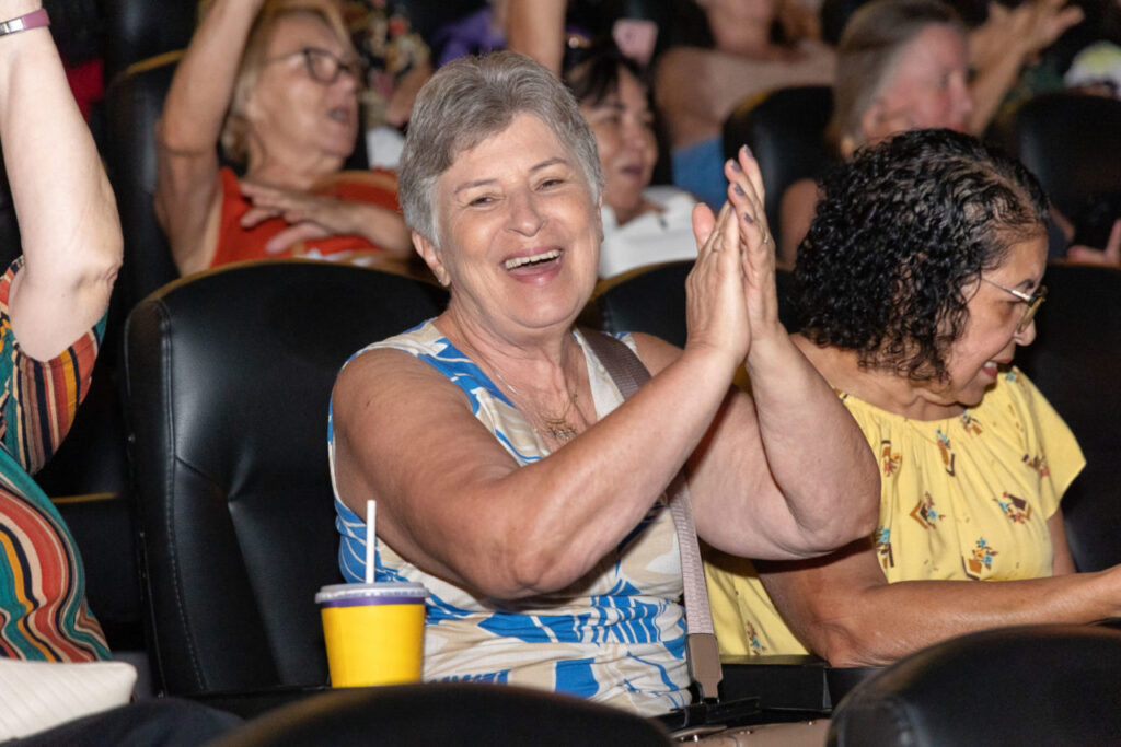 Um grupo de 40 assistidas no CRAS Leste pela Secretaria Municipal de Assistência e Desenvolvimento Social (SMADS) foi pela primeira vez convidado a participar do evento. Uma das mulheres assistidas, Rosamística Silva Garcia, de 85 anos, não disfarçava sua alegria no cinema ao lado de centenas de alunas da SMEL. “Estou muito satisfeita. Foi sensacional estar aqui”, disse ela. “É gratificante trocar por um dia minhas aulas de ginástica pelo filme na telona. Isso nos dá mais disposição e nos deixa mais livres”, emendou Rosalina Clemente Lopes Franco, de 71 anos. “É muito bom estar aqui, nesta atividade diferente”, finalizou a aluna de ginástica e de vôlei adaptado Ivone Aparecida Aguiar Cardoso de 72. Rosalina e Ivone frequentam o CECE Vanderlei Sperandio, no Jd. Santa Gertrudes.