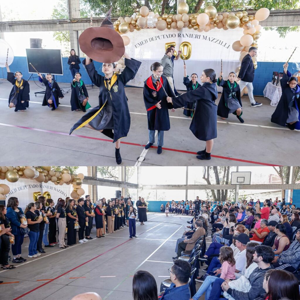 A Escola Municipal de Educação Básica (EMEB) Ranieri completou 50 anos de fundação e reuniu a comunidade escolar em uma comemoração especial em Jundiaí. O evento, realizado nesta semana, foi marcado por apresentações culturais, homenagens e momentos de grande emoção, reunindo alunos, professores, ex-estudantes, servidores e familiares.