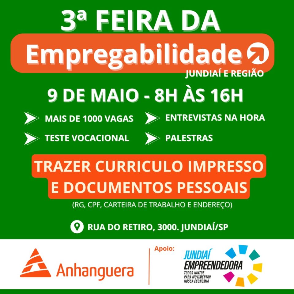 Na próxima sexta-feira (9), das 8h às 16h, a Faculdade Anhanguera de Jundiaí promoverá a 3ª edição da Feira da Empregabilidade, um evento gratuito e aberto ao público que busca conectar estudantes e a comunidade com o mercado de trabalho.