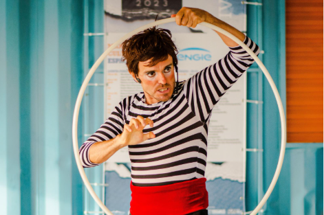No sábado (25), às 17h30, o ator e palhaço argentino Sebastian Godoy entra em cena com o espetáculo de circo “Yo-Yo”. A partir da premissa de que “o show começa em 5 minutos”, um personagem excêntrico e sua mala tentam, de forma atrapalhada, segurar a atenção dos espectadores. Em meio a contratempos, a performance busca despertar em cada um a memória da infância e o simples prazer de brincar.