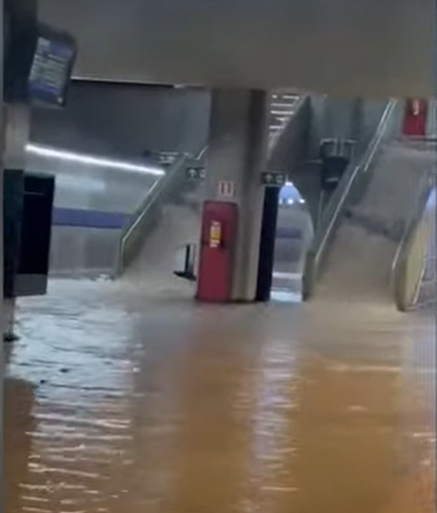 Vídeos que circularam nas redes sociais mostram a estação completamente inundada, com água atingindo a coxa de algumas pessoas. Passageiros foram vistos se agarrando em grades e corrimãos para evitar serem levados pela correnteza.