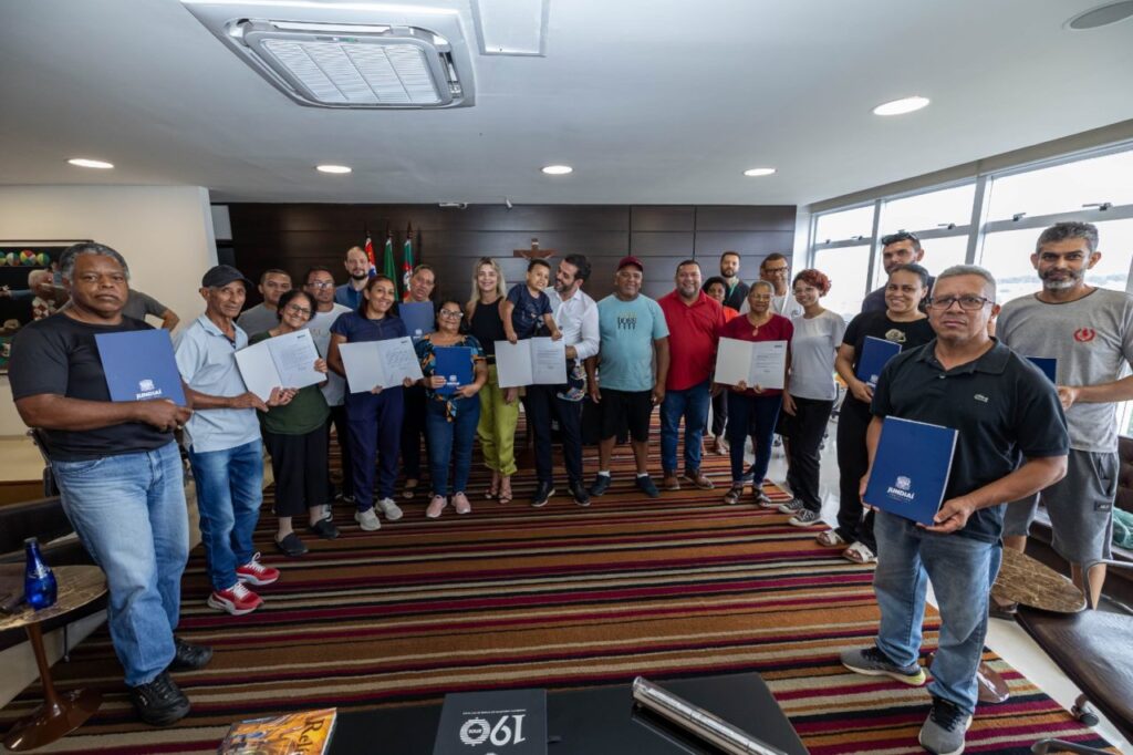A Prefeitura de Jundiaí deu mais um passo importante no processo de regularização fundiária do Jardim Novo Horizonte (antigo Varjão). Na tarde desta quinta-feira (26), o prefeito Gustavo Martinelli recebeu em seu gabinete 11 famílias para a entrega das matrículas de seus imóveis, garantindo segurança jurídica e o direito definitivo à moradia.