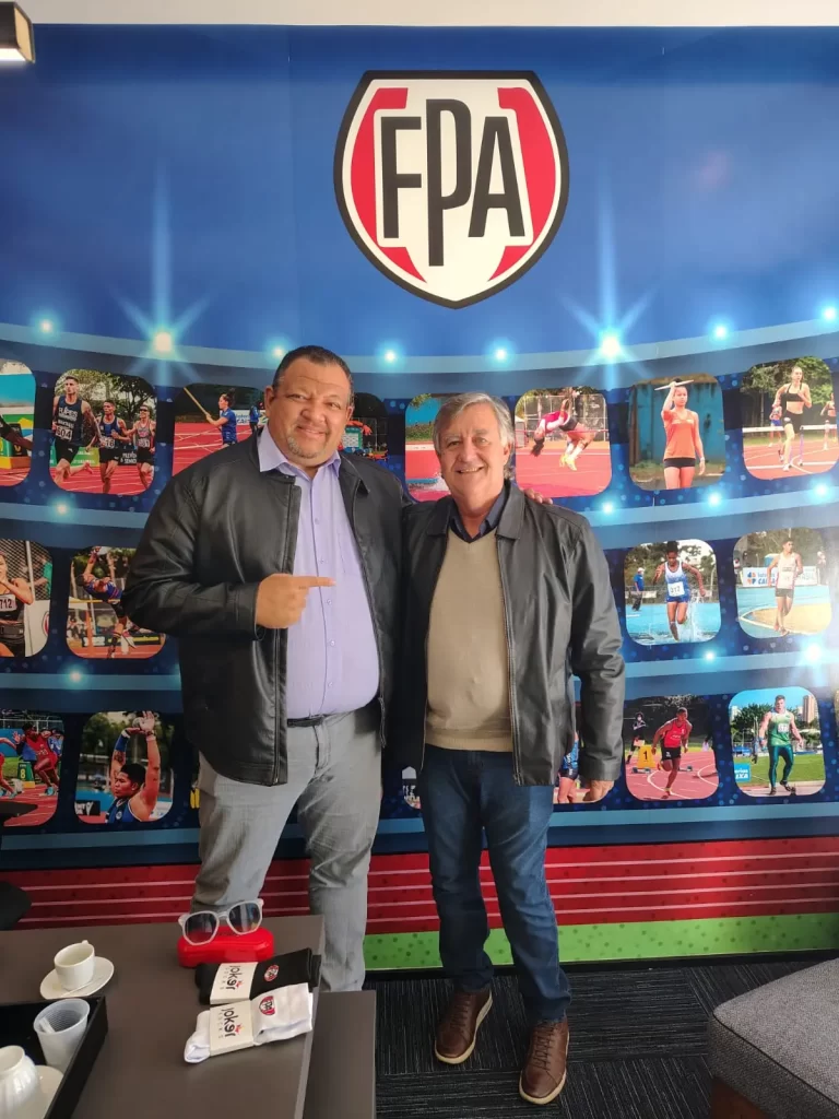 A Federação Paulista de Atletismo (FPA) anunciou nesta terça-feira uma nova parceria com a cidade de Jundiaí, que promete impulsionar o desenvolvimento do atletismo no município. O acordo foi formalizado em reunião na sede da FPA, na capital paulista, entre o presidente da entidade, Joel Oliveira, e Norberto José da Silva – o ‘Borracha’, assessor Especial de Projetos Esportivos da Unidade de Gestão de Esporte de Jundiaí. Norberto representou o prefeito Gustavo Martinelli e a secretária municipal de esportes, Rita Orsi.