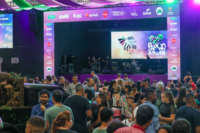 A 40ª Festa da Uva e 11ª Expo Vinhos chega ao seu terceiro final de semana e com ele a garantia de mais uma programação cultural gratuita que agrade a todos os públicos. Além dos shows musicais nos cinco palcos temáticos e das intervenções artísticas pelas ruas do Parque Comendador Antonio Carbonari (Parque da Uva), outras atrações também estão garantidas, como a Pisa da Uva, o Cortejo da Uva e o Brinde ao Pôr do Sol, e as presenças ilustres da Rainha e Princesas da Corte da Uva 2025.