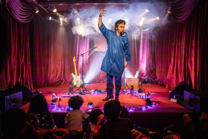 O domingo, 26 de abril, é marcado pela ludicidade de A Máquina do Tempo. No palco, o ator e músico Gui Stutz interpreta um menino que transforma objetos do cotidiano em um invento capaz de percorrer diferentes eras. Acompanhada por canções originais executadas ao vivo, a narrativa leva o público a encontros com dinossauros e com Santos Dumont a bordo do 14-bis. A jornada convida as crianças a observar como as transformações do passado moldaram o mundo de hoje, incentivando uma reflexão sobre a construção de um futuro mais harmônico.