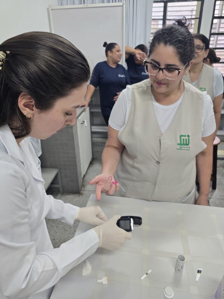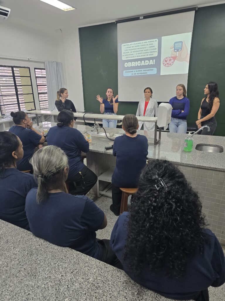 Durante os encontros, as monitoras preparam materiais e dinâmicas para explicar de forma prática como a glicose age no organismo, quais alimentos influenciam a glicemia e quais estratégias podem auxiliar a mantê-la equilibrada. O conteúdo foi pensado para as funcionárias poderem aplicar no dia a dia hábitos mais saudáveis e conscientes.