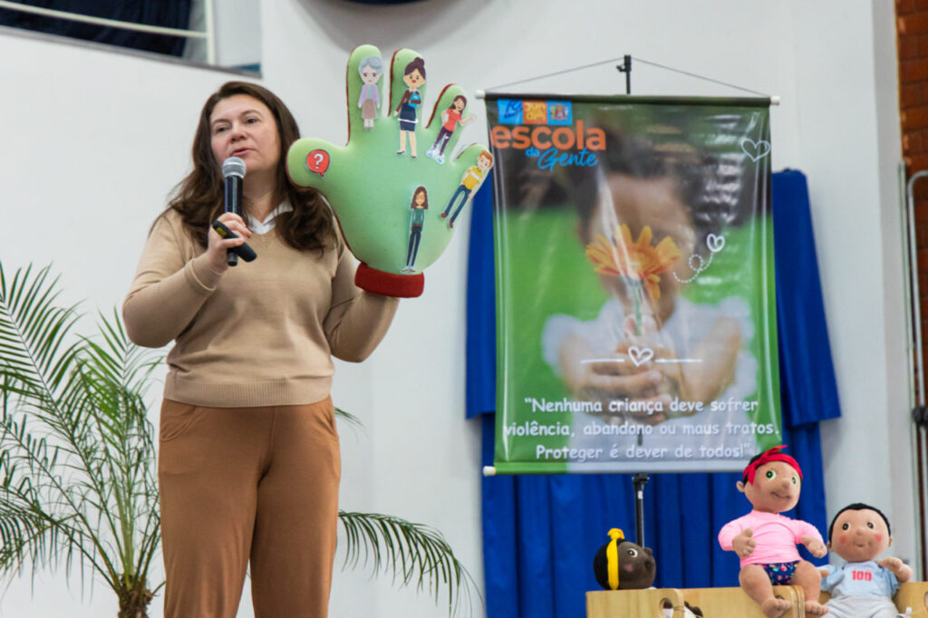 O evento contou ainda com a palestra da Solange Torelli, representante do Ministério Público, instituição que atua junto à rede de proteção para aprimorar fluxos de atendimento e acompanhamento dos casos. Ela ressaltou a importância do trabalho conjunto. “O professor está todos os dias em contato com as crianças e tem a confiança delas. Nosso papel é apoiar e oferecer subsídios para que saibam como agir diante de situações de violência ou de sinais que mereçam atenção”, afirmou.