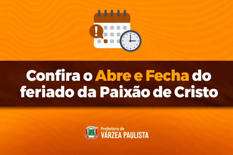 Para que a população se programe adequadamente, a Prefeitura de Várzea Paulista divulga os horários de funcionamento no feriado prolongado da Paixão de Cristo. A sexta-feira (3) é o feriado municipal da Paixão de Cristo e a quinta-feira (2) é ponto facultativo da Quinta-feira Santa.