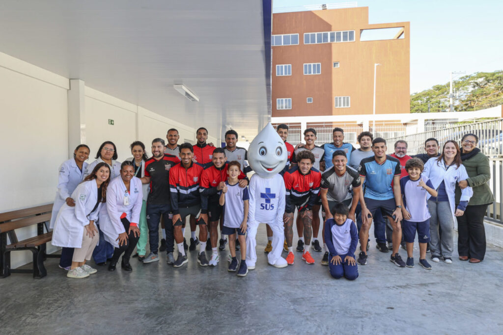 Jogadores do time do Paulista de Jundiaí, atendendo ao convite do Zé Gotinha feito no Estádio Dr. Jayme Cintra, receberam nesta terça-feira (10) a vacina contra a Influenza (gripe) na Clínica da Família Ponte São João. Com o avanço dos casos de síndrome gripal, a Prefeitura segue mobilizada para ampliar a cobertura vacinal de toda a população a partir de seis meses.