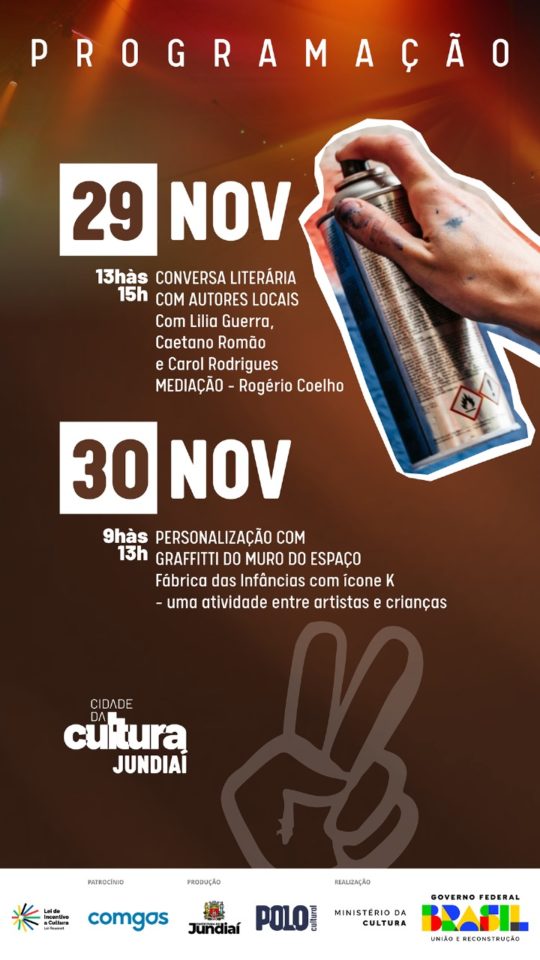 Com uma programação que une formação, literatura e artes visuais, o Festival Cidade da Cultura COMGÁS reforça o protagonismo de Jundiaí e o compromisso da SMCULT com ações culturais inclusivas e acessíveis para toda a comunidade.