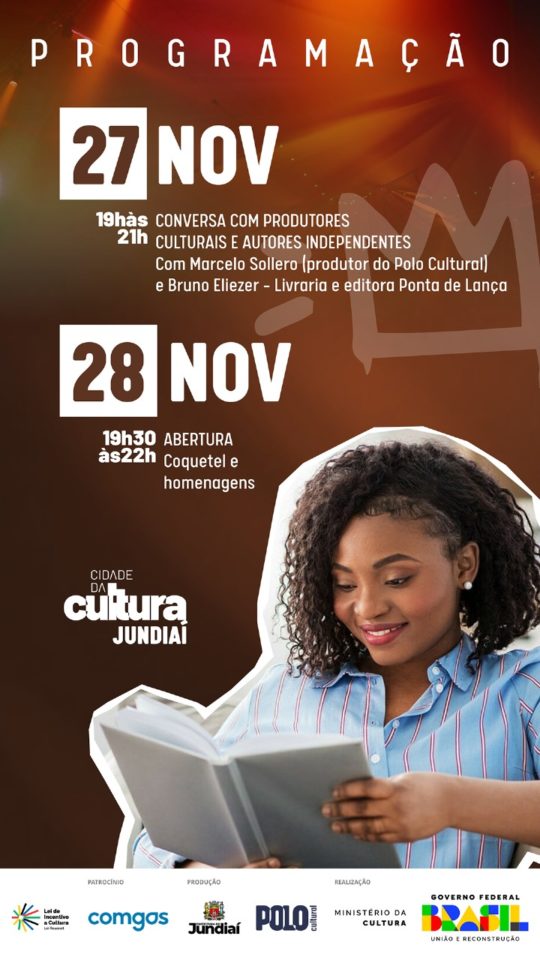 Reforçando o protagonismo da cena literária jundiaiense, o sábado terá, pela manhã, a Feira Literária com 20 autores da cidade, no saguão do Centro das Artes.