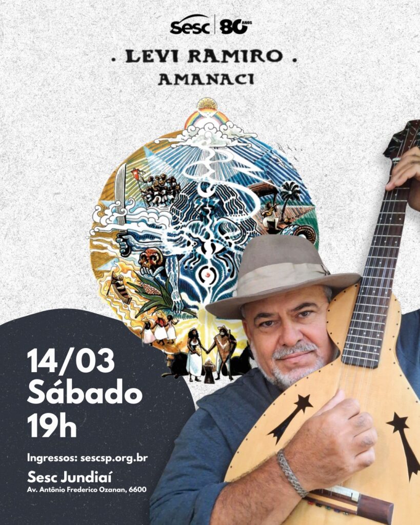 Uma celebração e reflexão sobre a chuva. Assim é ‘Amanaci’, novo álbum de Levi Ramiro, violeiro, cantor, compositor, artesão de instrumentos que será apresentado ao público de Jundiaí e Região no próximo sábado, dia 14/03, às 19h, no Teatro do Sesc Jundiaí.