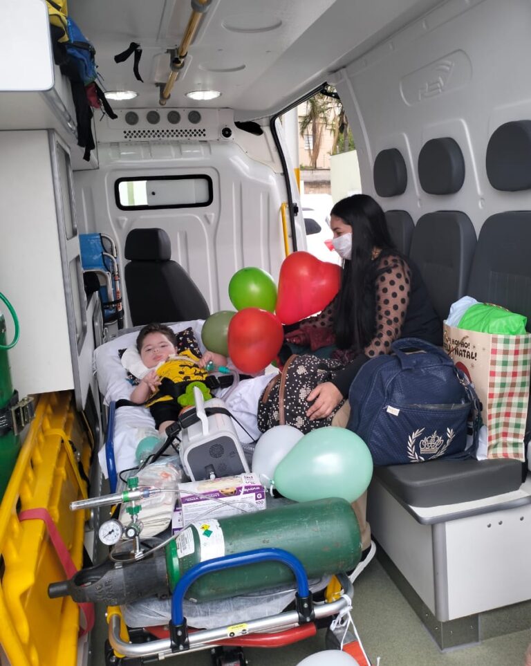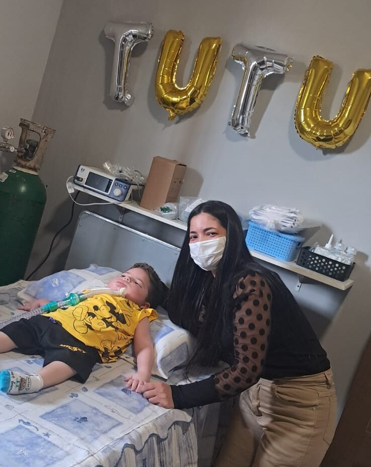 Arthur é portador de uma doença rara, a Atrofia Muscular Espinhal (AME), condição que exige cuidados complexos e contínuos. Ao longo da internação, Daniela fez muito mais do que esperar: aprendeu, na prática, tudo o que era necessário para garantir a segurança do filho em casa. Recebeu treinamento para o uso da ventilação mecânica e para a alimentação por sonda, tornando-se peça-chave no cuidado diário de Arthur.