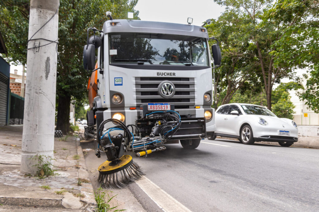 Além das equipes em campo, o mutirão conta com o apoio de equipamentos especializados, como o trator giro zero, conhecido como “zerinho”, utilizado no corte de grama em áreas verdes extensas. Também integra o mutirão um caminhão varredeira, responsável pela limpeza de ruas e avenidas.