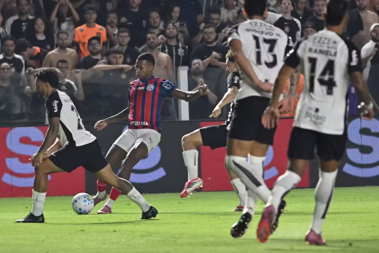 O Corinthians estreou com derrota no Campeonato Brasileiro ao perder por 2 a 1 para o Bahia, na Vila Belmiro. O Timão começou melhor, abriu o placar logo aos 11 minutos com Breno Bidon, após boa troca de passes envolvendo Matheuzinho, Carrillo, Memphis Depay e Rodrigo Garro.