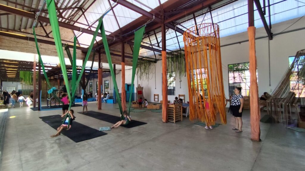 O espaço foi pensado para estimular crianças de todas as idades, com ambientes seguros para os menores: que contam com almofadas e piso amortecido, e desafios interativos para os maiores. Entre as atrações estão gangorras de tecido, brinquedos de madeira, o Caminho dos Bambus e as casas de tecido, que convidam à exploração, ao movimento e ao uso da imaginação. A proposta valoriza o brincar longe das telas, incentivando a socialização, a convivência e a troca entre as crianças.