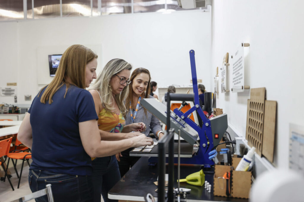 Sheila Hamburg, diretora do Centro de Línguas e Tecnologia da Informação Antonio Houaiss, ao qual o laboratório é vinculado, explica a proposta da oficina. “Por meio destes encontros, ampliamos o acesso dos educadores ao Fab Lab, permitindo que eles desenvolvam, de modo personalizado, os materiais de que precisam, e que confiram de que forma a estrutura do laboratório pode favorecer as suas práticas enquanto docentes. Além de gerar repertório, isso repercute nas aprendizagens das crianças em sala de aula e contribuem para o ensino por meio de uma abordagem lúdica e interativa.”