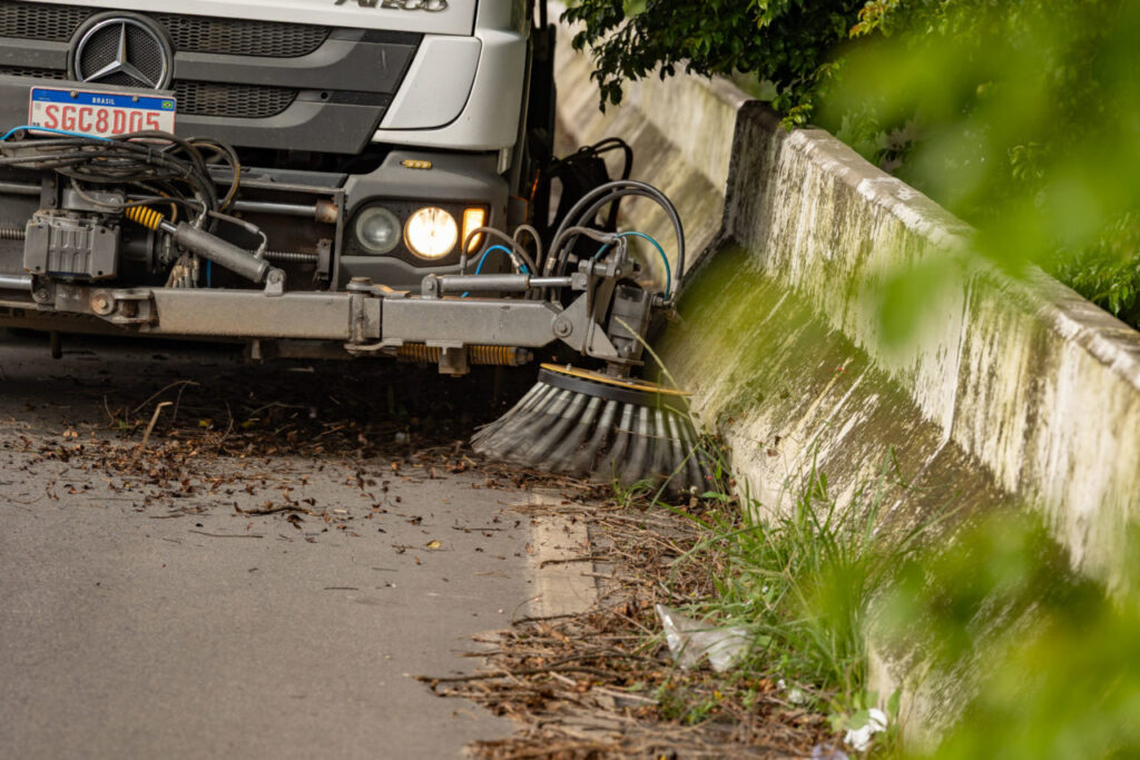Além do trabalho das equipes de campo, a limpeza urbana também conta com apoio de tecnologia. O caminhão varredeira, conhecido como “vassoura”, que nesta semana está em operação na avenida Frederico Ozanam e na rua Tiradentes.
