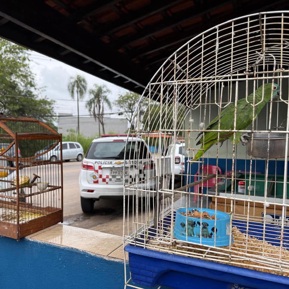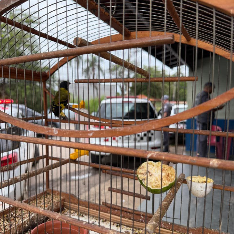 Durante a fiscalização, os agentes também resgataram duas aves silvestres — um pintassilgo e um papagaio — que estavam em cativeiro de forma irregular.
