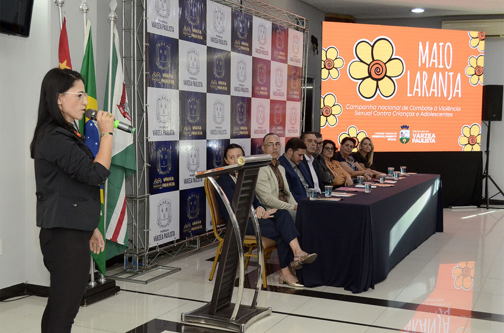Nesta quinta-feira (8), as ações do Maio Laranja em Várzea Paulista previstas para este ano foram abertas oficialmente em Várzea Paulista. A campanha nacional combate o abuso e exploração de crianças e adolescentes. A palestra da psicóloga Karolina Souza Cruz, especialista em terapia cognitivo-comportamental, sobre como praticar bem a escuta protetiva faz diferença em todo o trabalho da Rede Municipal de Proteção. A solenidade foi organizada pela Unidade Gestora Municipal de Desenvolvimento Social, no Hotel Orquídea Express Inn.