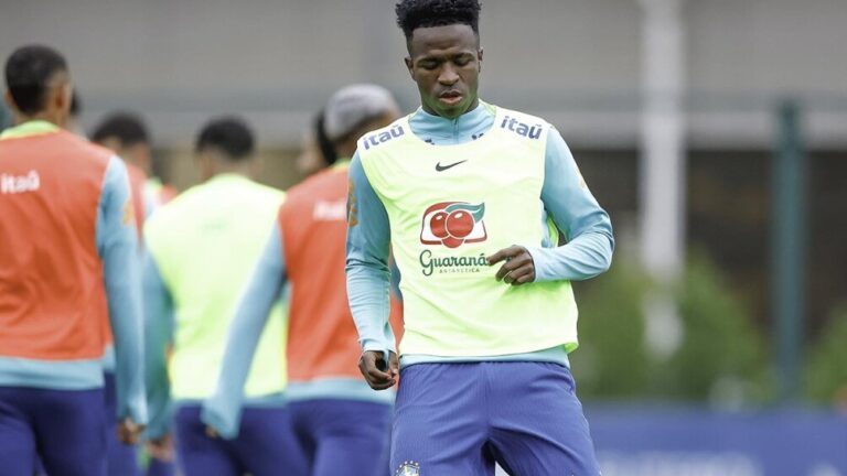 O terceiro dia de treinos da seleção brasileira em Londres, teve uma cena que chamou a atenção. Na transição entre duas atividades, o técnico Carlo Ancelotti pegou Vini Jr para conversar.