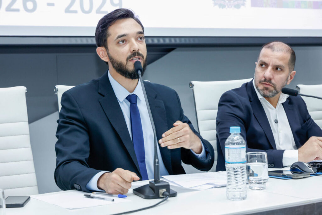 Foi realizada, na noite desta quarta-feira (8), na Câmara Municipal, a audiência pública para discutir o Plano Plurianual (PPA) 2026-2029 da Prefeitura de Jundiaí, que reúne as diretrizes, o planejamento orçamentário e as metas do governo para os próximos quatro anos. Mediada pelo presidente do Legislativo, o vereador Edicarlos Vieira, a apresentação foi conduzida pelos secretários de Governo e de Finanças, Abner Henrique Ferreira de Andrade e Lucas Lusvarghi, respectivamente, e pelo diretor do Departamento de Eficiência Governamental, Kleber Tandello Pereira.