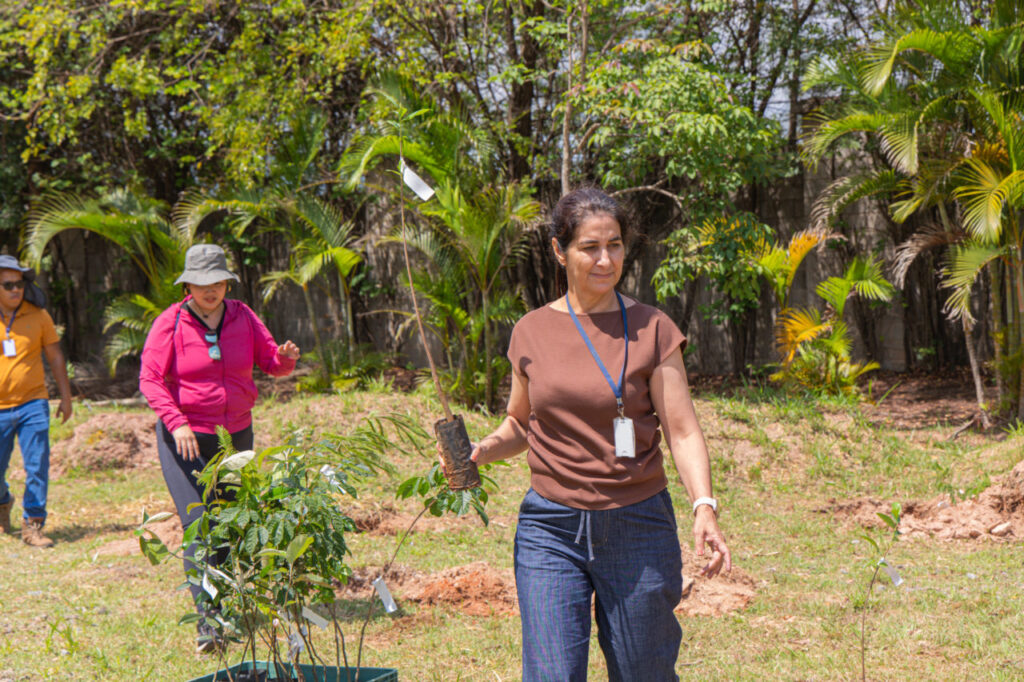 De acordo com Maria Helena, além dos benefícios ao clima local, o plantio também atende a pedidos da comunidade do entorno, que solicitava árvores para sombrear e qualificar o espaço. “O local é fechado, o que ajuda a proteger as mudas. Os moradores do condomínio vizinho também se comprometeram a auxiliar na irrigação, o que é fundamental para garantir o desenvolvimento das espécies. Entre as mudas, incluímos frutíferas que beneficiam tanto os moradores quanto a fauna, criando um pequeno fragmento que funciona como ponto de apoio para aves e outros animais.”