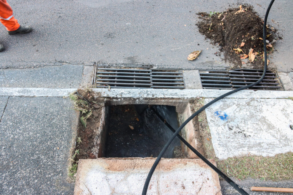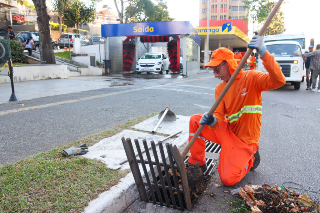 As ações incluem a limpeza das bocas de lobo e, em casos de entupimento, a utilização de hidrojateamento para a desobstrução dos bueiros.
