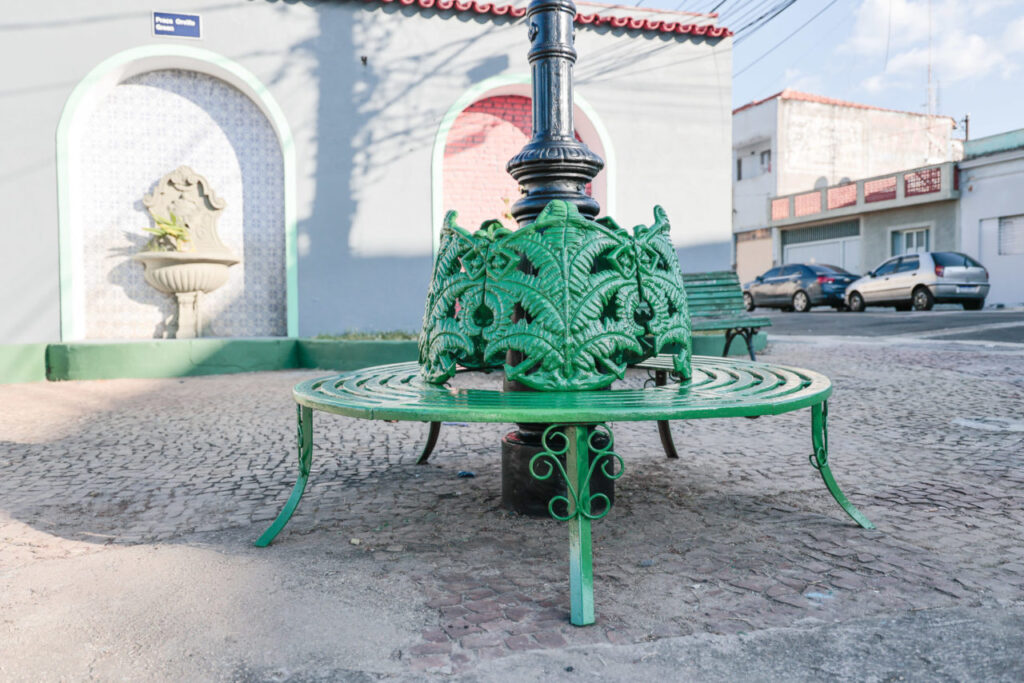 Os trabalhos no espaço, que é tombado como patrimônio histórico do município, incluem reparos no piso, pintura, limpeza do chafariz, dos azulejos e a substituição dos vidros das luminárias, que estavam quebrados.