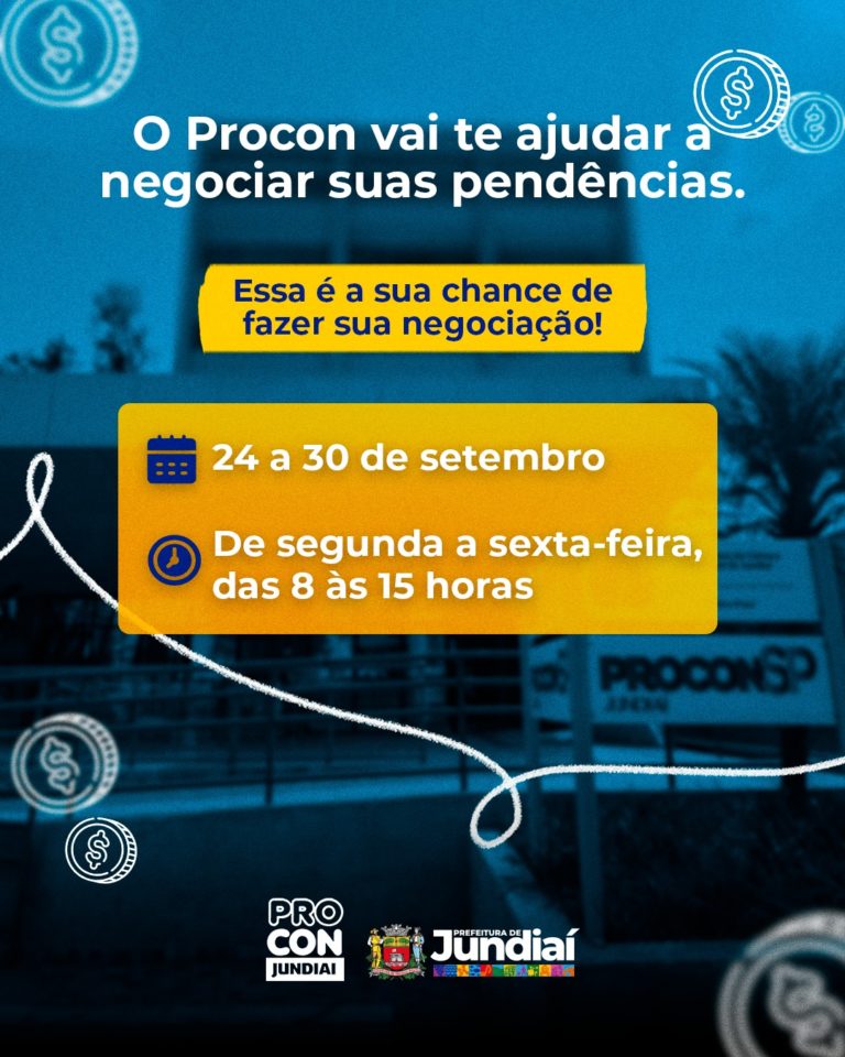 O PROCON Jundiaí realiza entre os dias 24 e 30 de setembro (dias úteis), o Mutirão Limpa Nome. O objetivo da ação é ajudar consumidores a renegociarem suas dívidas e recuperar a saúde financeira.