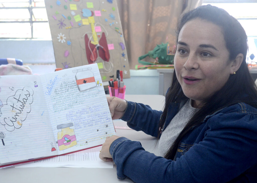 “Foi seguindo essa didática que realizamos uma maquete sobre alguns tipos de vírus e como ele circula no corpo humano. O interessante disso é que os questionamentos vieram dos alunos, num período em que muitos estavam gripados”, conta empolgada.