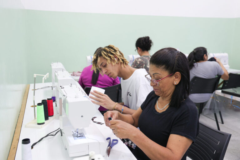 Na turma de Corte e Costura, da oficineira Karol della Lastra, a empolgação pela criação e confecção dos figurinos que serão usados pelos artistas tem um gosto a mais. Isso porque a turma passou a contar com novas máquinas de costura. Dos dez equipamentos, oito são para costura reta e dois de costura overloque.