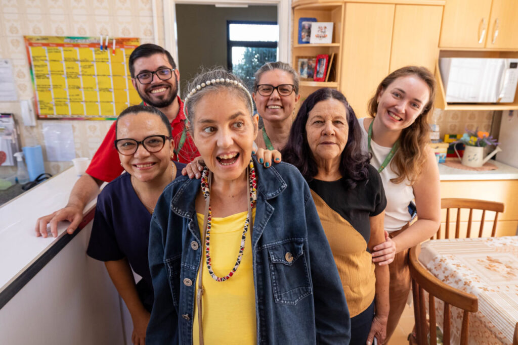 Cada SRT conta com equipes de enfermagem e cuidadores, que se revezam o dia todo, sete dias na semana. São oferecidas diversas atividades comunitárias, além de passeios frequentes. “Ela evoluiu muito depois que veio para cá, está mais calma, carinhosa e esperta. Até me emociona saber que ela está tão bem aqui”, relata a mãe de Juliana, Magali Teixeira, 70.