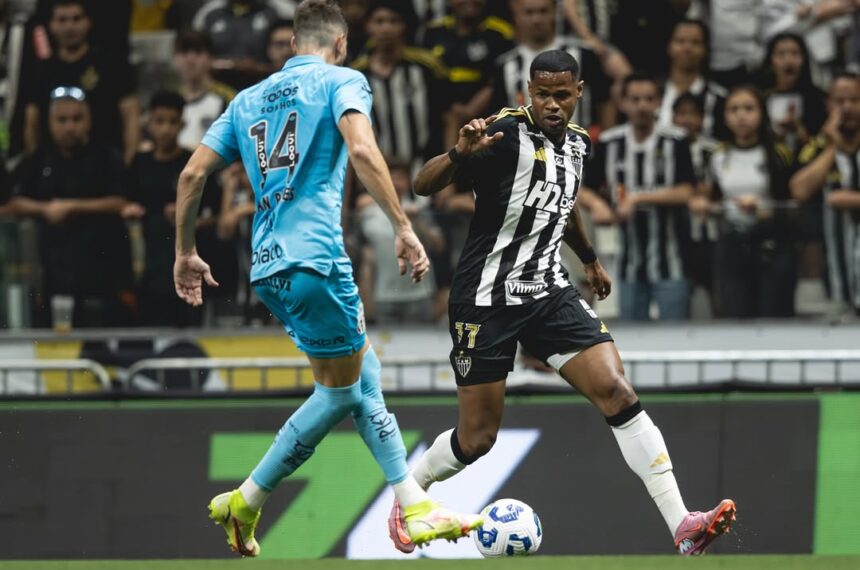 Atlético-MG e Santos empataram em 1 a 1 neste domingo (14), na Arena MRV, pela 23ª rodada do Campeonato Brasileiro. Com o resultado, o Galo chega a 25 pontos, na 13ª colocação, enquanto o Peixe soma 23, mantendo-se em 15º. Igor Gomes e Tiquinho Soares fizeram os gols da partida.