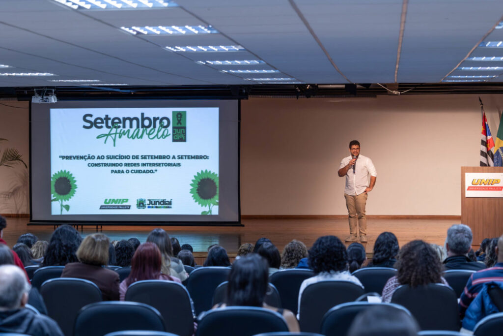 Com o tema “Prevenção ao suicídio de setembro a setembro: construindo redes intersetoriais para o cuidado”, a Prefeitura de Jundiaí promoveu, nesta semana, uma capacitação voltada a profissionais de diversas áreas, como saúde, educação, assistência social e segurança pública. O evento, realizado no auditório da Universidade Paulista (UNIP), faz parte das ações da campanha Setembro Amarelo no município e teve como foco o fortalecimento das redes de apoio e cuidado em saúde mental.