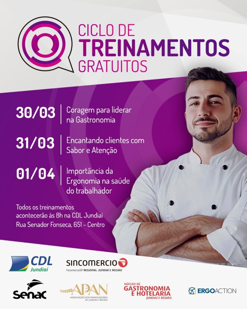 O Sindicato do Comércio Varejista de Jundiaí e Região (Sincomercio) e a Câmara de Dirigentes Lojistas de Jundiaí (CDL), com apoio do Senac e em parceria com o Núcleo de Gastronomia de Jundiaí e a APAN (Associação de Panificadores de Jundiaí e Região) promoverão na próxima semana um ciclo de treinamentos gratuitos voltado para empresários e colaboradores do setor alimentício.